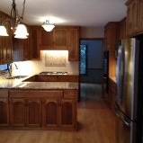 New granite countertops, tile, fixtures and appliances help to update this 1970s kitchen.